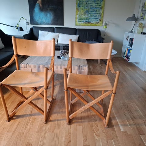 Ældre stol læder og træ med fin patina.