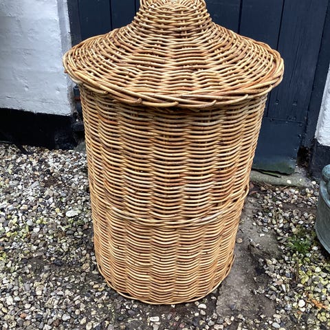 Flettet vasketøjskurv med stofindsats