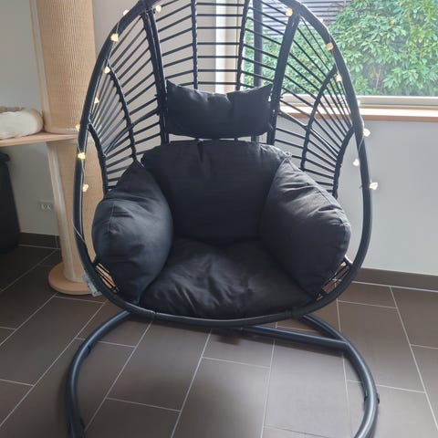 Fordele ved hængestol til havenSkab din egen afslapningszone med denne elegante hængestol i storkerede-design. Den runde stol med ryglæn giver en behagelig siddeoplevelse til både hygge og leg - hjemme eller udendørs. De rolige ecru‑nuancer passer smukt ind i stue, soveværelse, på altan eller i haven og løfter indretningen med et luftigt, bohemepræg.Komfort og holdbarhedStolen er lavet af solide bomuldsreb og en metalramme, der giver stabil støtte. Det rummelige sæde og den store diameter gør det let at finde en behagelig position, mens de flettede detaljer og frynser pryder udtrykket. Maks. belastning er 150 kg.Til afslapning og hyggestunderMed en hængekøje i form af en armchair bliver pauser ren nydelse - læn dig tilbage med te og en god bog, og lad kroppen falde til ro.Rummelig hængestol med ryglæn for ekstra komfortStærke bomuldsreb og metalramme sikrer stabilitetElegant ecru-look med dekorative frynserMaks. belastning på 150 kg – velegnet til både unge og voksneNem at hænge op i stue, soveværelse, på altan eller i haveType: Hængestol i storkerede-design med ryglænFarve: EcruMateriale: Bomuldsreb, metalrammeMaks. belastning: 150 kgSamlet diameter (bredde med ryglæn): 80 cmSædets diameter: 63 cmRyglænets højde: 45 cmReblængde, kort: ca. 82 cmReblængde, lang: 100 cmBemærkning: Ikke vandtæt