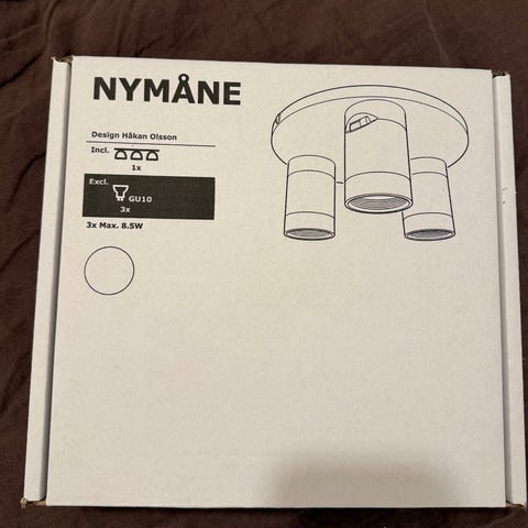 IKEA loftlampe med rund form og hvid skærm. Passer til montering i loftet.