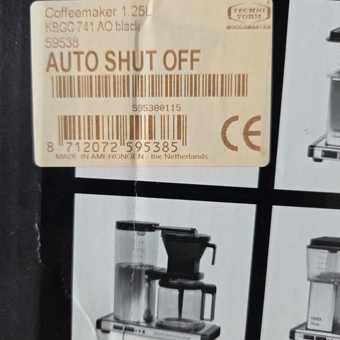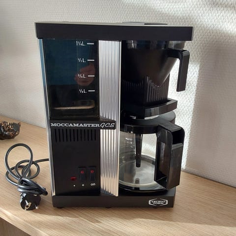 Moccamaster Cup-one, Cream + ét ubrugt , originalt, Moccamaster-krus + 3 x originale, uåbnede Moccamaster-kaffefiltre. Fejlkøb, købt 24/8-2025 (kvittering haves). Brygger én kop kaffe (330 ml) ad gangen, ved perfekt temperatur og gennemløbstid. Slukker automatisk, når vandbeholderen er tom. Kaffemaskinen er købt og registreret hos moccamaster.com, hvilket giver 10 års garanti (kvittering for registrering haves). Brugt få gange. Pris er inkl. fragt. Afhentes eller sendes ved forudbetaling via MobilePay.