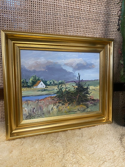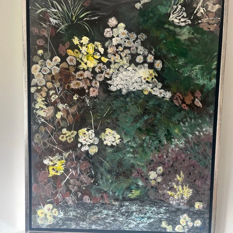 Smukt blomster maleri i skønne farver.. lys ramme med mål 35x42,5. Maleriet er signeret T.Gúral. ♻️ Varen findes hos Shop’n lop Fredericiavej 97 7100 Vejle. Instagram Shopn.lop.