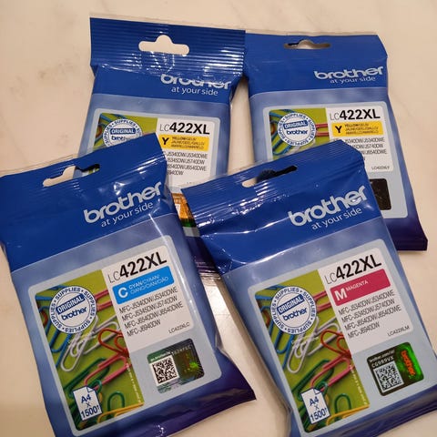 1 x Cyan B423C, 2 x Sort B423K, 1 x Magenta B423M. Helt ny og ubrudt emballage. Passer til: