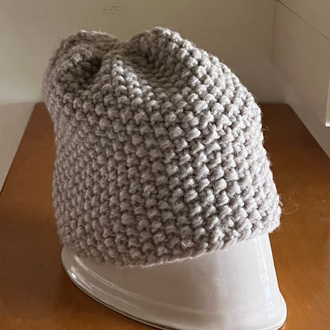 Ulden lys grå strikket hue. - hjemmestrik mønsterstrik One size.