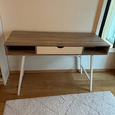 Rigtig fint skrivebord (Navn: TAMHOLT). Toppen er overmalet en enkelt gang for at dække tidligere brugsspor.