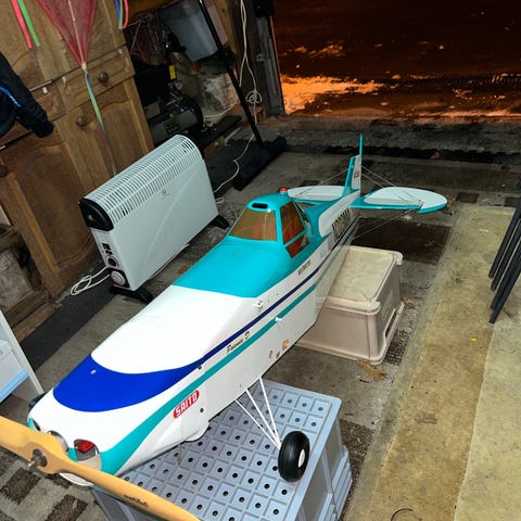 JR Models Diablo 200 fjernstyret fly i gul farve. Flyet er designet til fjernstyret modelluftfart og har et aerodynamisk design med tydelige sorte og blå ternede mønstre på kroppen. Modellen inkluderer vinger med teksten 'JR Models Diablo 200' og er velegnet til hobbybrug.