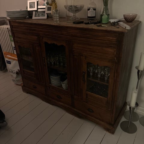 Perfekt som opbevaring eller som dekorativt møbel i stue, entré eller spisestue.