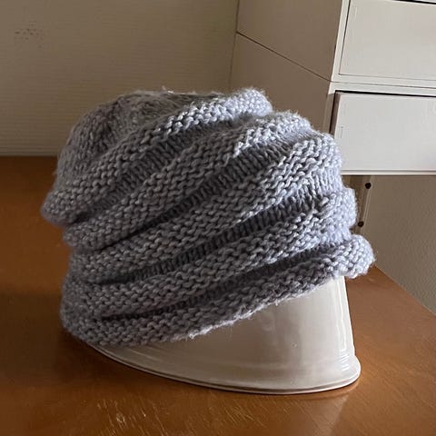 Lys beige / sandfarvet Ulden Strik Hue - hjemmestrik perlestrik. One size.
