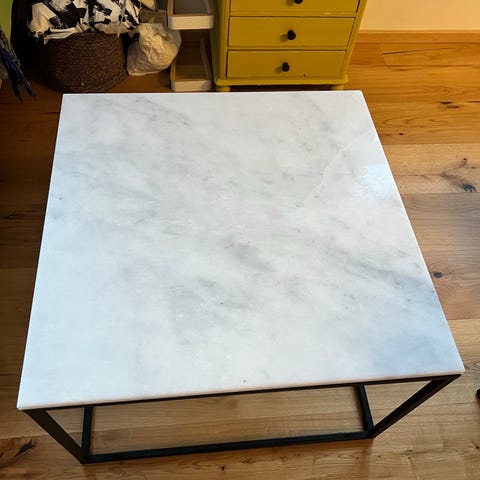 Sofabord med hvidt marmorbordplade og sort træstel