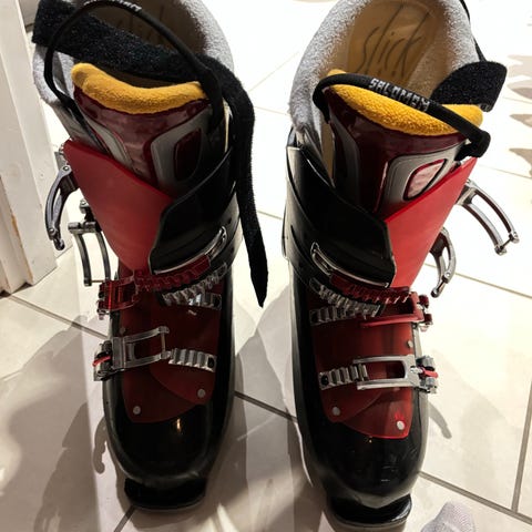 Brugte Salomon alpinstøvler i str. 28-28,5 med tilhørende taske.