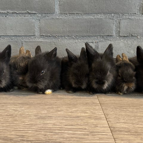 Vi har 4 skønne kanin unger som er klar til at flyve fra reden til et trygt hjem med varme og massere af kærlighed. De er 10 uger gamle og blandinger af vædder og Hollænder kaniner. 2 af dem har en stribe i hoved men markeringerne på kroppen er forskellige, hvor de 2 andre er samme lysebrune farve med lysebrune øjne.