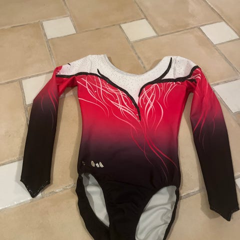 Gymnastikdragt str. 152 rød og hvid med guld detaljer