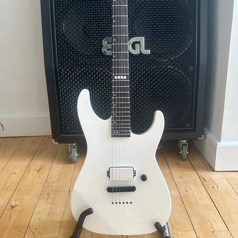 BRAND NEW ESP Horizon NT-7B E-II Standard Series 40th Anniversary from 2015! This is brand new old stock from the European ESP distributor that went out of business. The guitar has never been played and has never left its case other than for these photos. Features the EMG 81-7H and 85-7H pickups, which are the seven string versions of the EMG combo Zakk Wylde and many other metal players use. Also has premium Gotoh locking tuners. String-thru body with premium inset flush-mounted string ferrules on the back. Still has protective plastic film and inspection sticker! Comes with original case and case items.