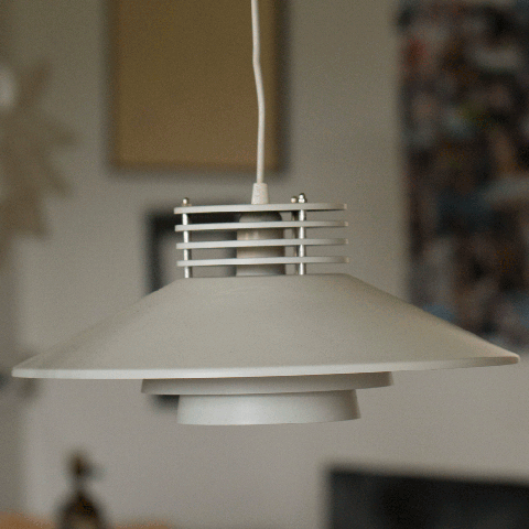 Enkel og pæn rund lampe i hvid. Passer fint ind i de fleste rum og fungerer godt i både moderne og mere neutral indretning.