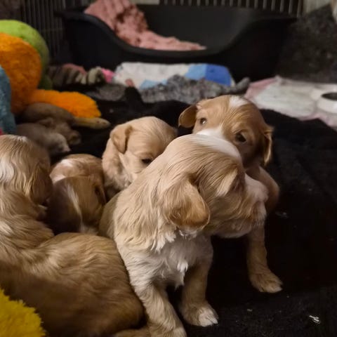 Nyfødt valpekuld snart klar til salg Amanda og Bruno fik sig et skønt kuld hvalpe på 6 styks fordelt på 4 tæver og 2 hanner.