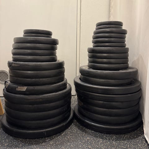 65 kilo i alt. 2 stk. 20kg, 2 stk. 10 kg og 1 stk. 5 kg.