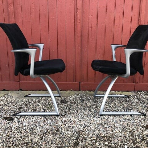 Flotte kontorstole i Alcantara fra Bent Krogh Furniture A/S. Par kontor / konferencestole betrukket med sort alcantara, stel af forkromet metal.