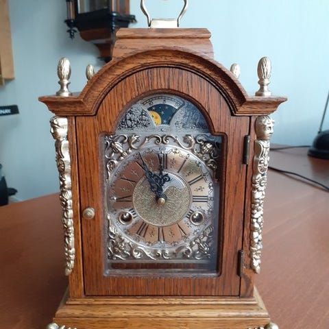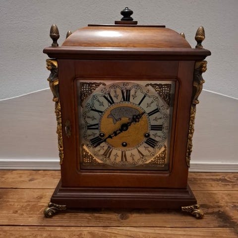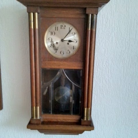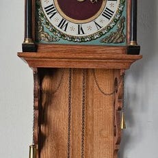 Røregulativt ur i egetræ fra 1980-1990 med mekanisk urværk, otte dages gangreserve, halvtime slag med flere klokker, trædør udskåret, oprindelse Nederlandene, i fremragende stand og i funktion, med nøgle, målene 70 × 30 × 15 cm, vægt 5 kg. Klik på den blå "gå til varen" knap, for at købe eller byde på denne vare. Den samlede pris vil blive vist inden du afgiver dit bud.