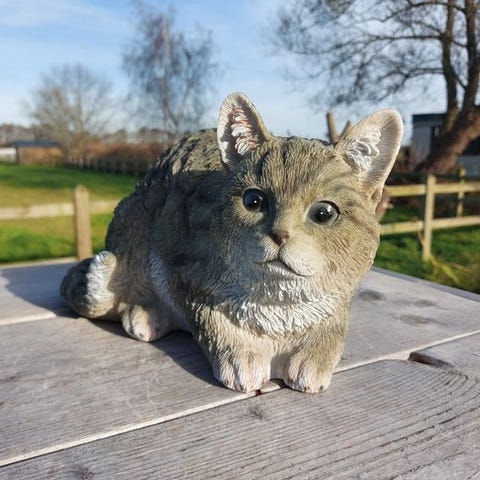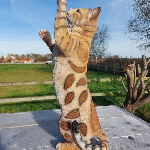 Polyresin skulptur af en hvid kat med slips og solbriller, oprindelse Europa, i fremragende stand, ikke underskrevet, mål: 60 cm høj, 32 cm bred, 35 cm dyb. Klik på den blå "gå til varen" knap, for at købe eller byde på denne vare. Den samlede pris vil blive vist inden du afgiver dit bud.