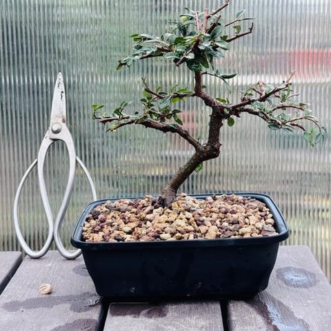 Dette træ har en elegant bevægelse i stammen, en robust sprække med en fin takstruktur. Virkelig et syn at se på. På grund af størrelsen kan du nemt flytte det og for eksempel vise det frem ved at placere det på udendørstaflen.