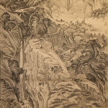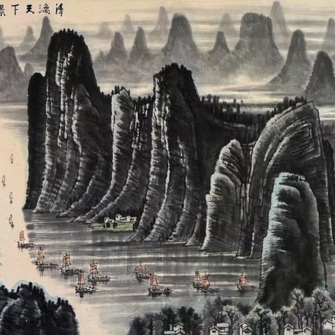 Et smukt kinesisk blækmaleri, håndmalet på rispapir.