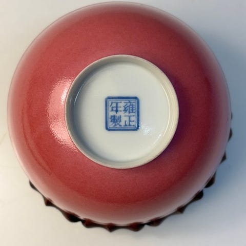 Porcelænsskål med brun eller Café au Lait glasur. Bunden er glaseret, og foden er uglaseret.