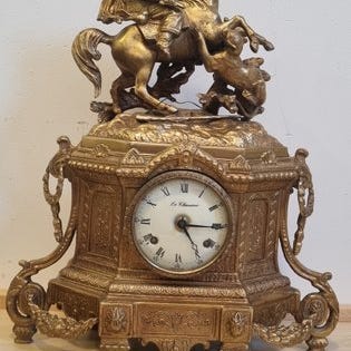 Klokkendrager-ur fra 1950–1960, Tyskland, Schwarzwald, zinklegering, mekanisk urværk, 1-dages gangreserve, uden slag, i god brugt stand og i funktion; målene 38 × 20,5 × 12 cm, vægt 2,2 kg, med nøgle. Klik på den blå "gå til varen" knap, for at købe eller byde på denne vare. Den samlede pris vil blive vist inden du afgiver dit bud.