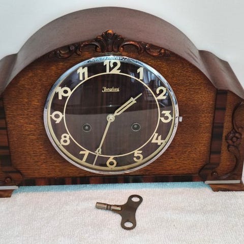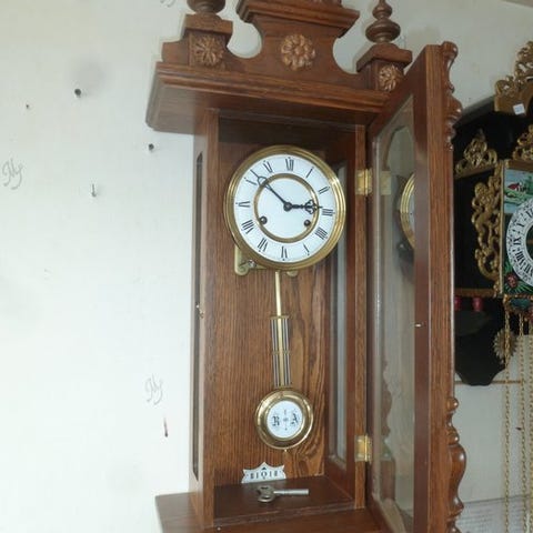 Uret er lavet af Hermle, type 141-031. Dette ur har gennemgået en lille vedligeholdelse og kan fortsætte i mange år. Hvert halve minut slår det
