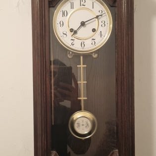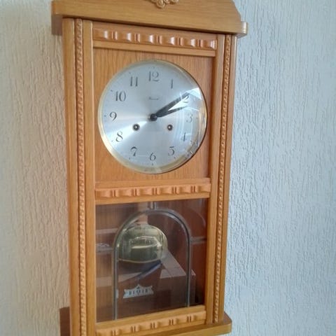 Dette vægur har et raffineret udseende, ikke kun på grund af formen, men også på grund af den rolige bevægelse af pendulet. Uret tiltrækker opmærksomhed, men er ikke dominerende.
