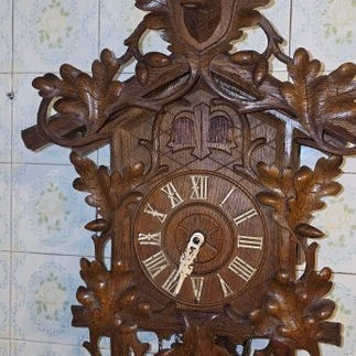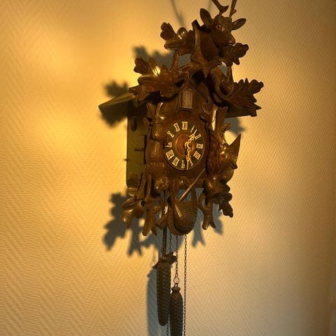 Tysk mekanisk vægur med murkuckoo, årtierne 1960-1970, trækasse og kobber detaljer, 32 cm høj, 22 cm bred, 15 cm dyb, ca. 1,5 kg, et-dags urværk, slår hvert halve time med et gong, i god brugt stand og fungerer. Klik på den blå "gå til varen" knap, for at købe eller byde på denne vare. Den samlede pris vil blive vist inden du afgiver dit bud.