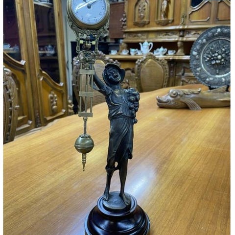 Tyskfremstillet mekanisk penduledrejuk af FHS Franz Hermle & Sohn, sorttroldtur i en Black Forest skildklokke med lakeret sag, håndmalet, af træ og bronze, mål 37×25×8 cm, vægt 4 kg, én-dages gangreserve, halvtimes strike med et gong, ingen opwindsnøgle, ca. 1980–1990, i god brugt stand. Klik på den blå "gå til varen" knap, for at købe eller byde på denne vare. Den samlede pris vil blive vist inden du afgiver dit bud.