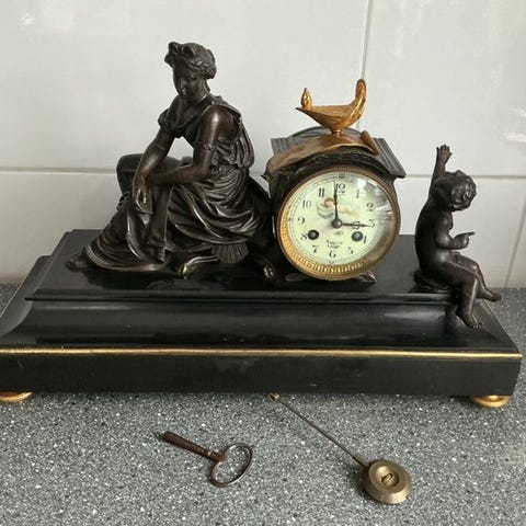 Figurmantal-ur Louis XVI-stil Marmor, Bronze, Messing - 1850-1900 - Magnifik ...