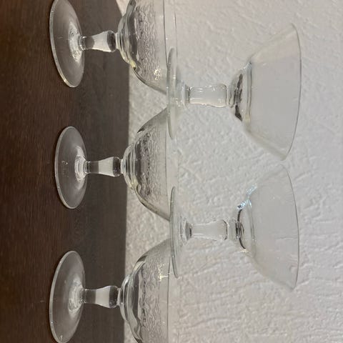 Glas, Likørglas, 8 Smukke gamle likørglas / små champagneskåle. Med brede optiske striber og slebne stjerner. 8,2 cm høje og 7,2 cm i dia