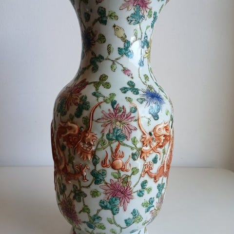 Porcelænsvase fra Qing-dynastiet (1644-1911) med låg, højde 32 cm og diameter 12 cm, titel 'Blue and White Lid Vase - 青花缠枝莲纹鸡腿瓶'. Klik på den blå "gå til varen" knap, for at købe eller byde på denne vare. Den samlede pris vil blive vist inden du afgiver dit bud.