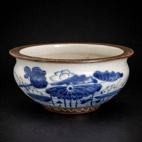 Blå og hvid lågkrukke - 青花缠枝莲纹鸡腿瓶 - Porcelæn - Kina - Qing-dynastiet (1644-1911)