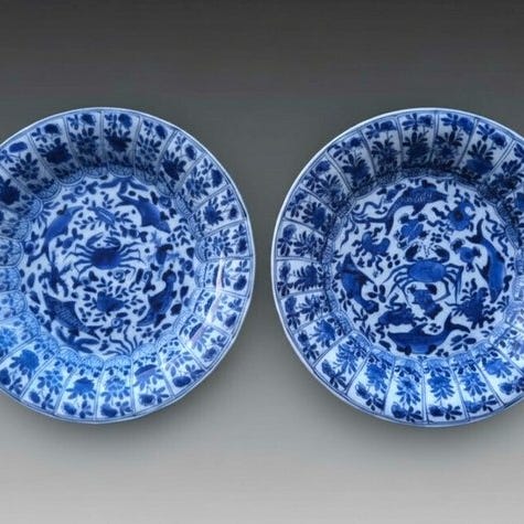 Sjælden og tidlig kinesisk kraak-blå og hvid porcelænsfad, Wanli-perioden (ca...