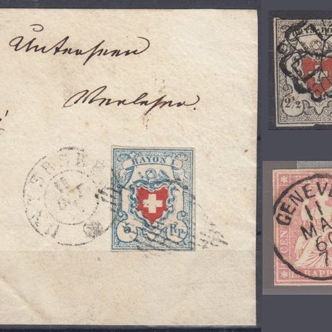 Origindes Schweiz, en udstrakt specialiseret samling i en Leuchtturm-ringmappe med stempelte, ubrugt og postfriske frimærker fra årene 1862-1944 og nogle breve inklusive en F1 på et pænt brev. Klik på den blå "gå til varen" knap, for at købe eller byde på denne vare. Den samlede pris vil blive vist inden du afgiver dit bud.