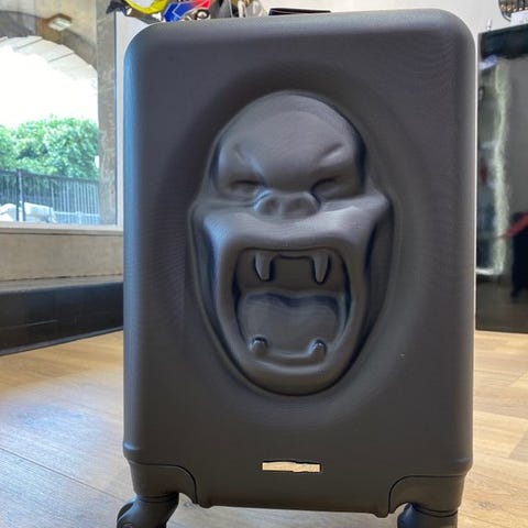 KiwiKong (grøn/khaki) og Trolley af Richard Orlinski, en begrænset udgave fra 2021, signeret på pladen, i fremragende stand, 4 kg, 37 x 26 x 18 cm, med COA og Kong Escape Trolley. Klik på den blå "gå til varen" knap, for at købe eller byde på denne vare. Den samlede pris vil blive vist inden du afgiver dit bud.