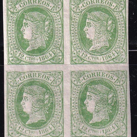 Spanien, 1862, Isabel II - 12 Cuatos grøn, brugt, Edifil 62 - Blok 4 - Matasello prefilatelico Pamplona. Klik på den blå "gå til varen" knap, for at købe eller byde på denne vare. Den samlede pris vil blive vist inden du afgiver dit bud.
