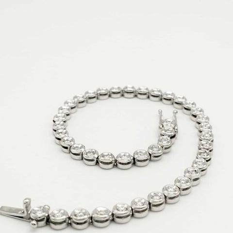 Messika Moove-armbånd i hvidguld 18 karat (750/1000) med tre naturlige rundslipede diamanter i alt 0,24 carat, 19 cm unisex armbånd, vægt 21,10 g, model Moove, uden laboratorierapport. Klik på den blå "gå til varen" knap, for at købe eller byde på denne vare. Den samlede pris vil blive vist inden du afgiver dit bud.