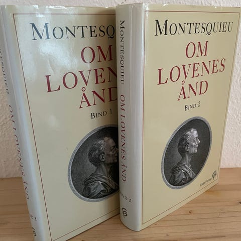 Montesquieu, Œuvres complètes, i 5 bind, udgivet i 1820 af Chez Lefèvre et Ledentu i Paris, på fransk (originalsprog), demi-læderryg med olivenfarvet bind og forgyldte detaljer, to foldedekarte, i alt 2542 sider, vægt ca. 3,248 kg, stand God. Klik på den blå "gå til varen" knap, for at købe eller byde på denne vare. Den samlede pris vil blive vist inden du afgiver dit bud.
