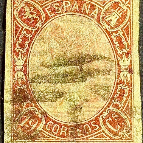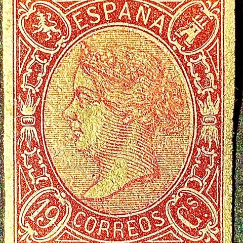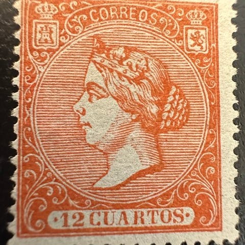Rarisimo frimærke på 12 Cuartos Bermellón tilhørende serien.
