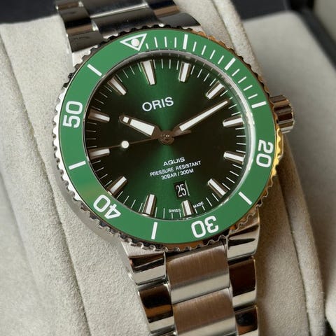Oris Aquis Date Calibre 400 Automatic, reference 01 400 7769 4154-07 8 22 09PEB, stål case med keramisk bezel, gråt urskive, diameter 41,5 mm, schweizisk automatisk bevægelig, ny stand, med original æske, papirer og Oris‑garanti fra 08/2025. Klik på den blå "gå til varen" knap, for at købe eller byde på denne vare. Den samlede pris vil blive vist inden du afgiver dit bud.