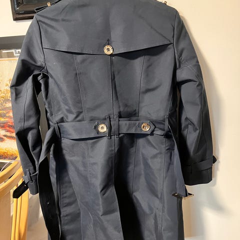 Ikonisk model i cashmere/uuld tæppefrakke designet af Christopher Bailey for Burberry Prorsum Autumn 2014. Denne dobbeltsidede tæppefrakke (uden initialer) er lavet af fineste uld og cashmere i Skotland. Ikonisk og ekstraordinær, med fantastisk håndværk, som er så berømt for Bailey-æraen hos Burberry, smuk med trenchcoat eller med et mere afslappet look med bukser eller jeans og ridestøvler til den ridderinspirerede stil, et stille luksusstykke, som kan bruges på begge sider.