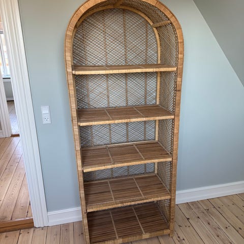 Elegant reol, bibliotek i bambus, rotin, cannage træ.
