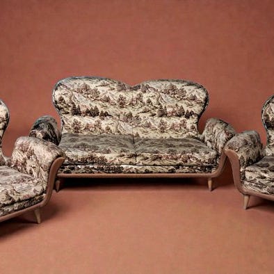 3-personers sofa og to matchende lænestole i autentisk skandinavisk stil.