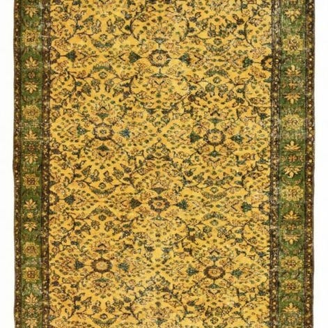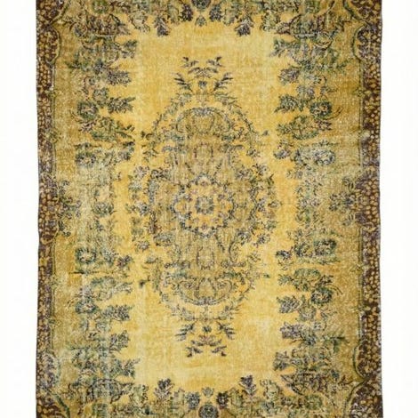 Håndvævet vintage tæppe af uld på bomuld i gul, model Yellow 'gold' vintage, 280 cm × 170 cm, fremstillet i Tyrkiet i det 21. århundrede, i meget god stand og professionelt renset, med ægthedscertifikat. Klik på den blå "gå til varen" knap, for at købe eller byde på denne vare. Den samlede pris vil blive vist inden du afgiver dit bud.
