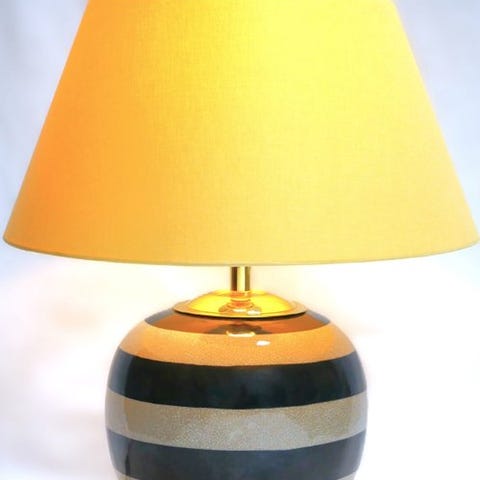 Designbordslampe med porcelænsvas og messingdele, fremstillet i Tyskland omkring 2000, 55 cm høj og 40 cm bred (dybde), i funktion og ubrugte. Klik på den blå "gå til varen" knap, for at købe eller byde på denne vare. Den samlede pris vil blive vist inden du afgiver dit bud.