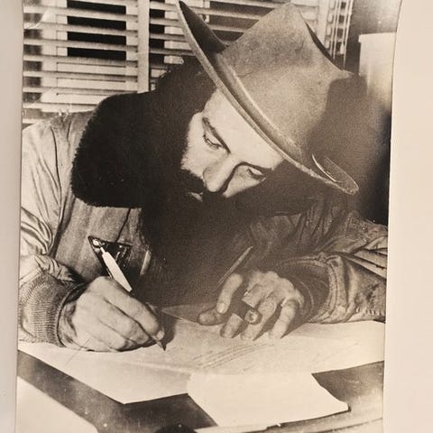 Uset privat billede af Fidel Castro, cubansk kommandør, tæt på, 1959.