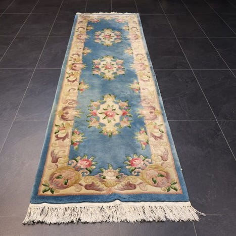 Indisk håndknyttet tæppe af uld på bomuld, 312 cm x 82 cm, fra slutningen af det 20. århundrede, i god stand. Klik på den blå "gå til varen" knap, for at købe eller byde på denne vare. Den samlede pris vil blive vist inden du afgiver dit bud.